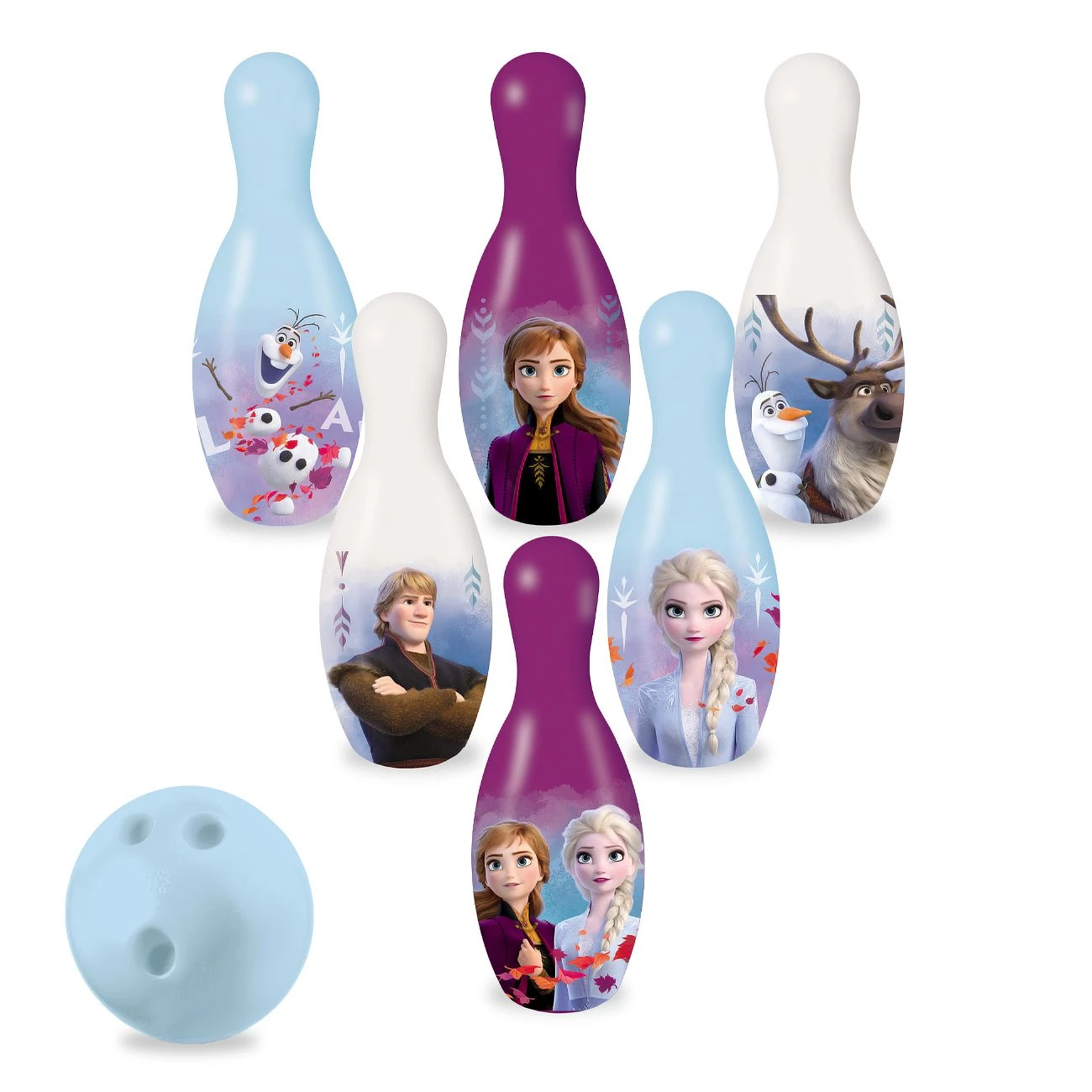 Set za kegljanje, vsebuje 6 kegljev premera 18x6,5 cm in kroglo premera 8 cm. Izdelano iz visokokvalitetne plastike.