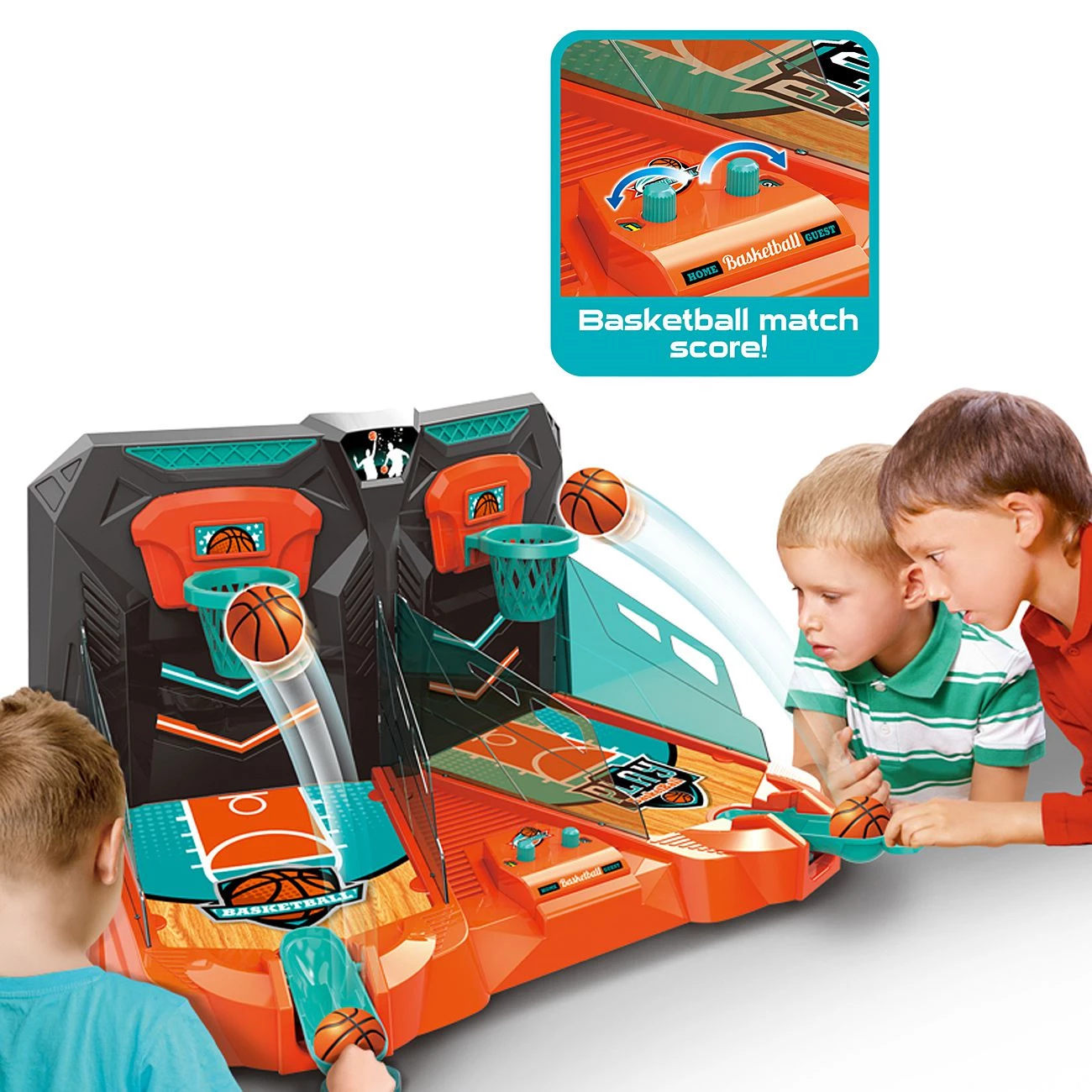 Košarkaška igra za dva Vsebuje 6 žogic. Priporočeno za otroke od 3 let. Dimenzije: 86 x 31,5 x 54 cm