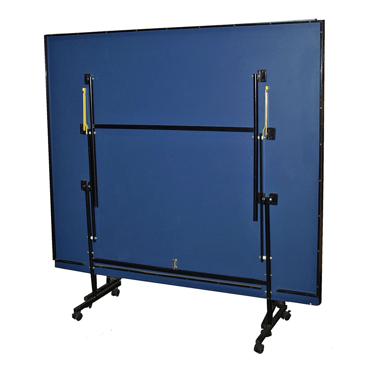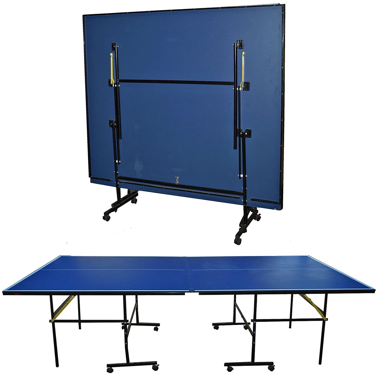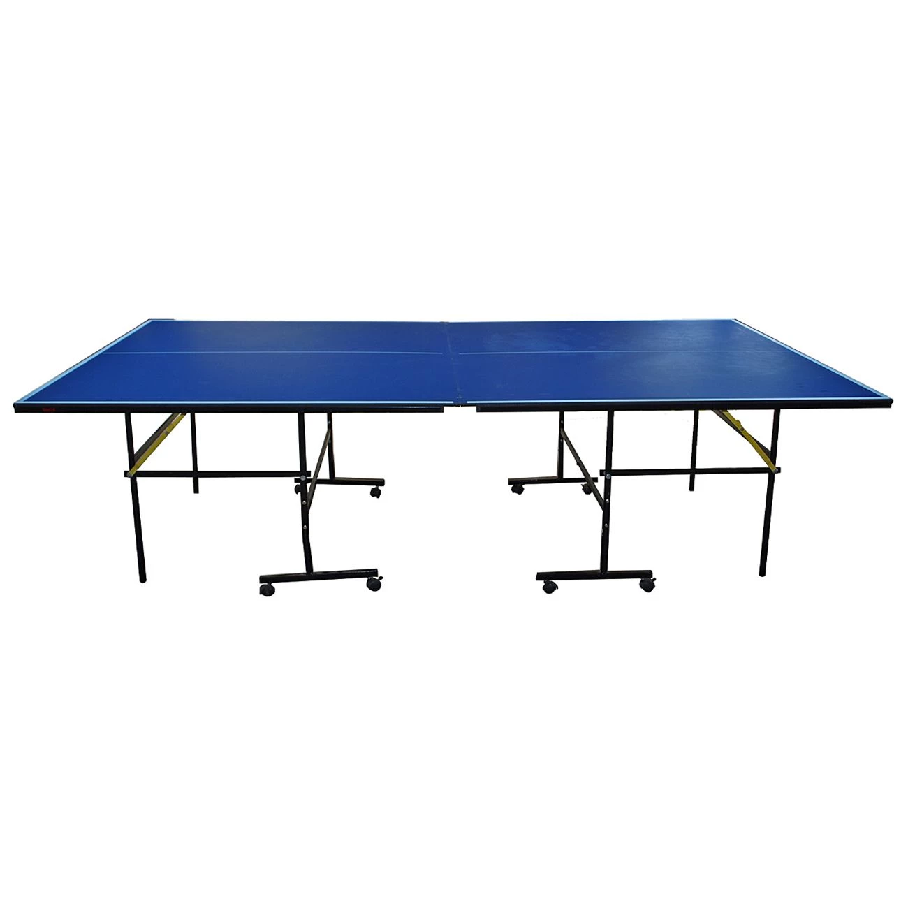 Miza za namizni tenis dimenzije 274x152x76 cm. Ogrodje mize je iz kovinskih cevi 20 x 10 mm. Miza je zložljiva zato pri shranjevanju zavzame malo prostora. Postavitev je zelo enostavna. Narejena je iz kvalitetne MDF lesene plošče debeline 12mm. Miza ima 8 koles zato se zlahka premika po prostoru. Dobro stabilnost zagotavljajo močne noge debeline 22mm. Miza je modre barve in je namenjena za notranjo uporabo. Mrežica,loparji in žogice niso priloženi.