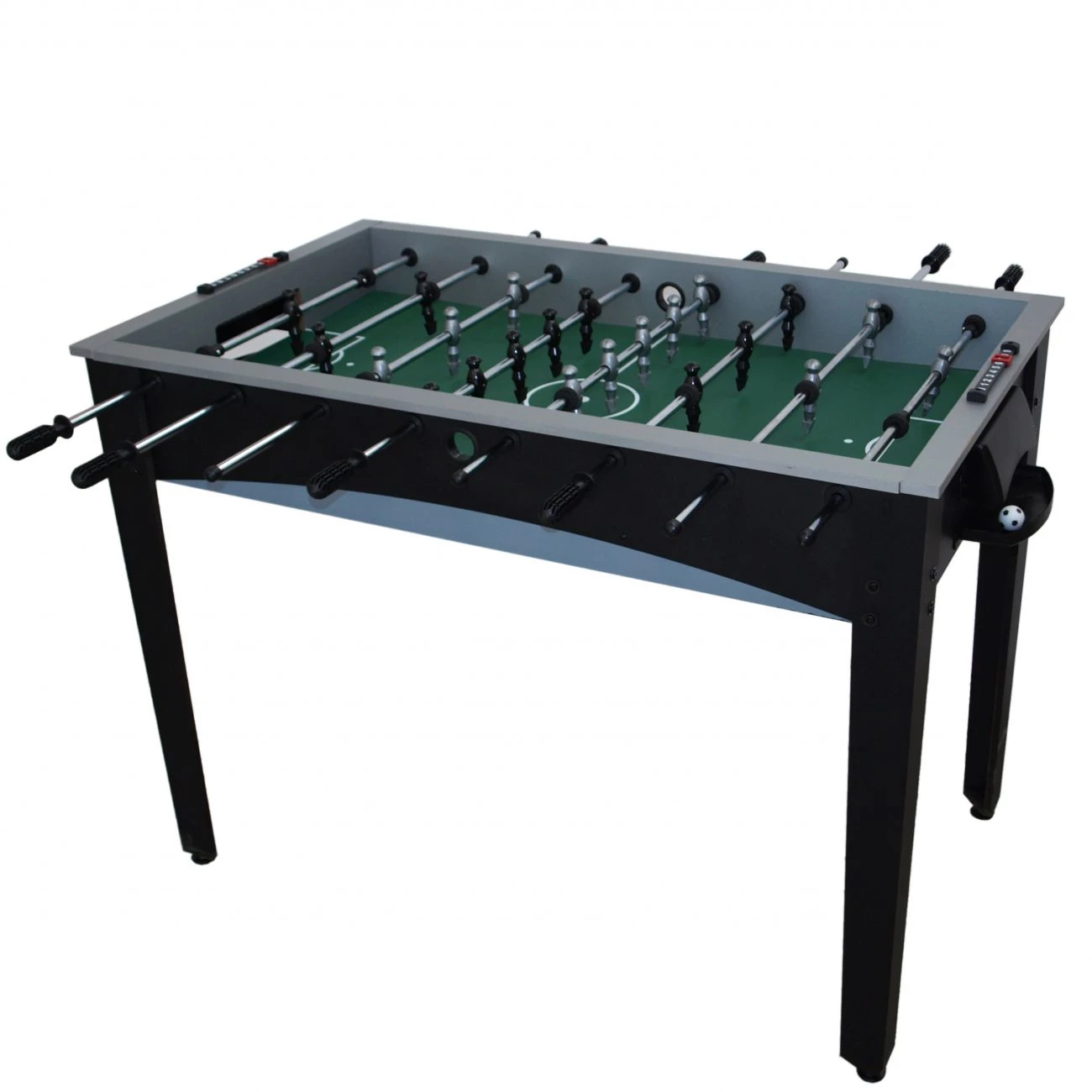 Namizni nogomet. Skupne dimenzije: 81,3x122x104 cm, igrišče za igro 103x58 cm. Material izdelave: MDF plošča, pvc. Stojalo iz MDF profila premera 12 mm. Plastični igralci na kovinskih vodilih. 2 števca rezultatov in 2 žogici za igro.