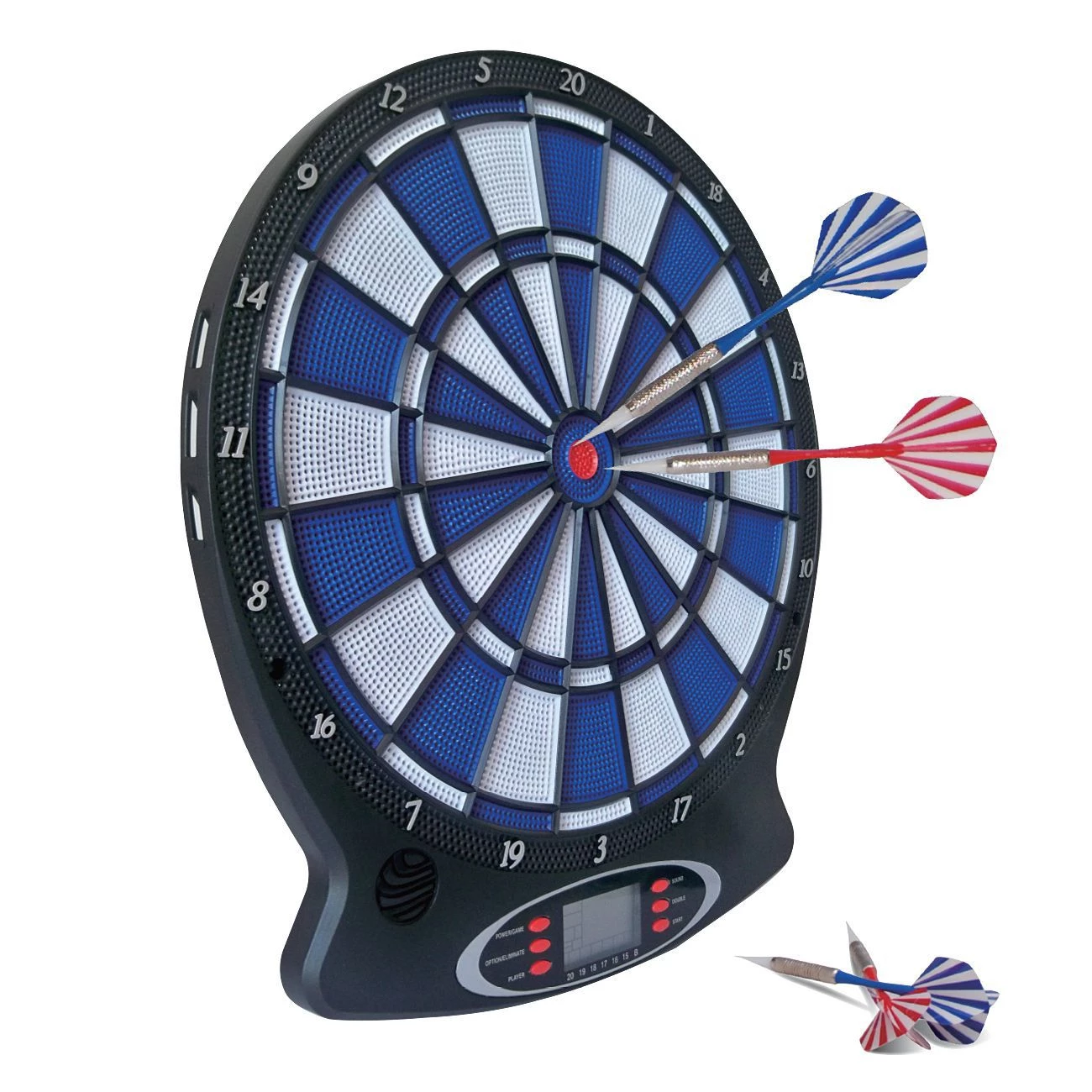 Elektronski pikado z 18 različnimi opcijami iger. Set vsebuje 6 puščic. Za delovanje so potrebne baterije 3xAA, ki niso priložene. Dimenzija: 37,8 x 43 x 2 cm. Igra za 1-8 igralcev. Primerno od 14 let dalje.