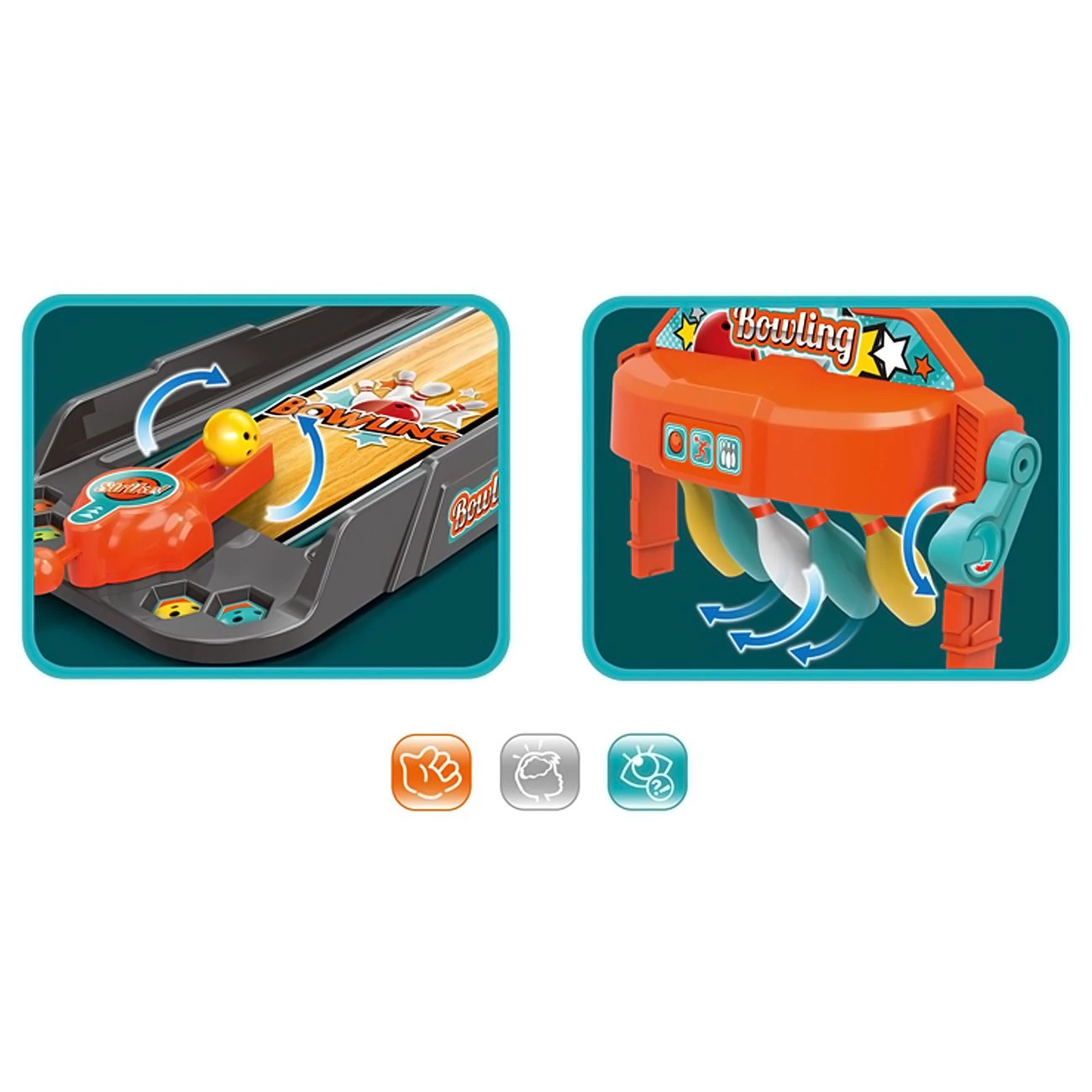 Set za keglanje Vsebuje 3 žogice in 5 stožcev. Igra je za 1-3 igralcev. Primerno za otroke od 3 let dalje. Dimenzije: 75,5 x 35 x 74 cm