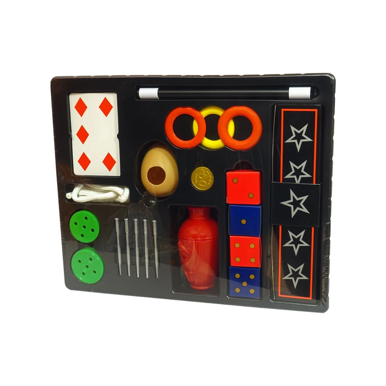 Set Trik na trik čarovniški pribor in rekviziti. Za učenje in izvedbo 50 različnih trikov. Čarobna škatla vsebuje vse potrebno, da postanete čarovnik, katerega občinstvo nagradi z bučnim aplavzom. V kompletu so: kocka, kartonska cev, čarobna posoda za vodo, magija karta, čarobno jajce, vrv, palica, plastični žeblji in obročki. Sledite podrobnim navodilom in triki so zagotovljeni! Priložena navodila za izvedbo trikov. Priporočamo za otroke od 8 let dalje.