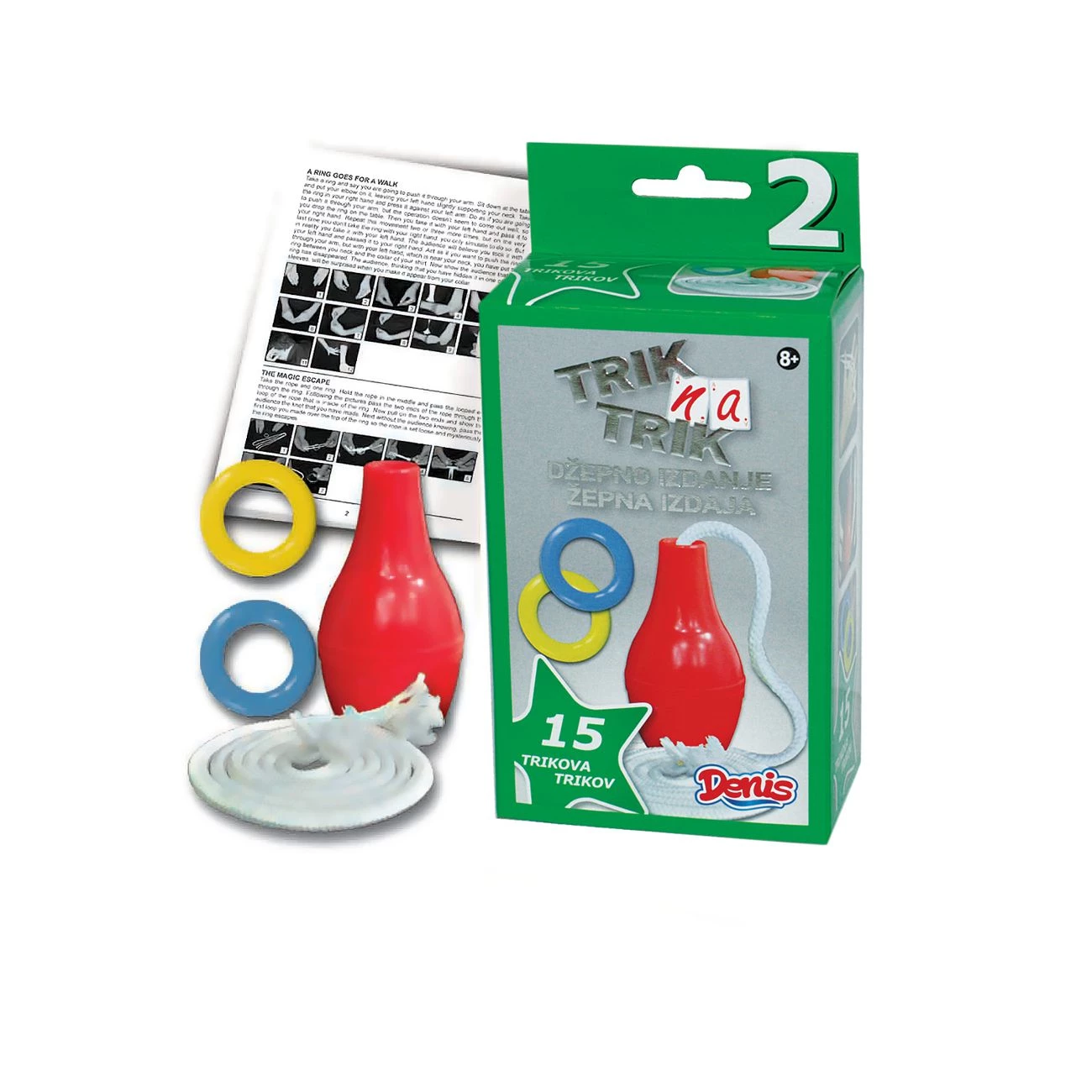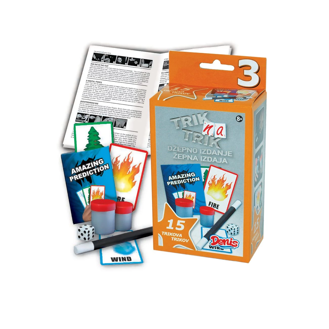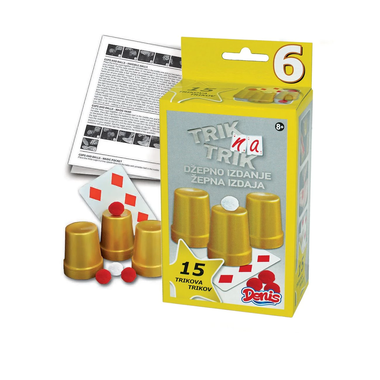 Trik na trik žepna izdaja je zabaven set, s katerim boš postal pravi čarodej. S kartami, žogicami in drugim pripomočki zlahka navdušimo svoje prijatelje. Čarovniški triki so zelo enostavni in izvedeš jih lahko v nekaj minutah. Na voljo je 6 različnih kompletov in z vsakim lahko narediš do 15 različnih trikov. Primerno za starost od 8 let naprej.