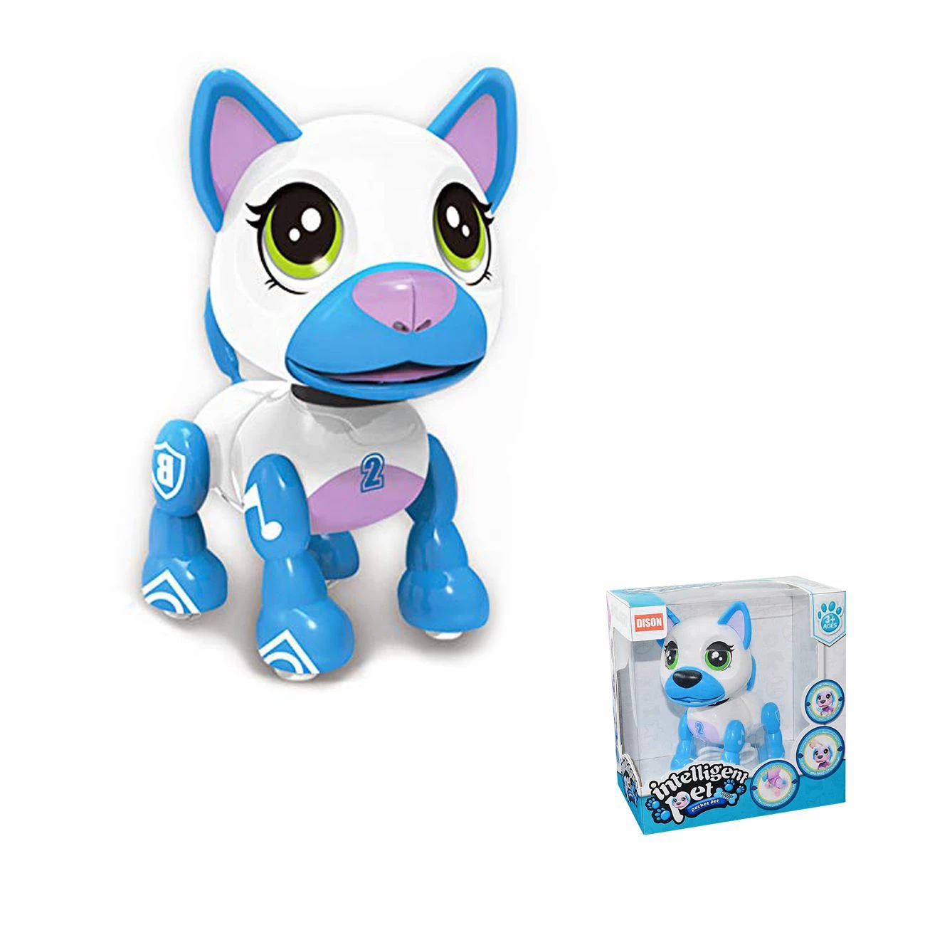 Interaktivni psiček na baterije, ki poje, pripoveduje in nudi veliko zabave kot pravi hišni ljubljenček. Baterija je vključena, polni se preko USB priključka. Dimenije: 16x10x16 cm. Priporočena starostna skupina 3+.