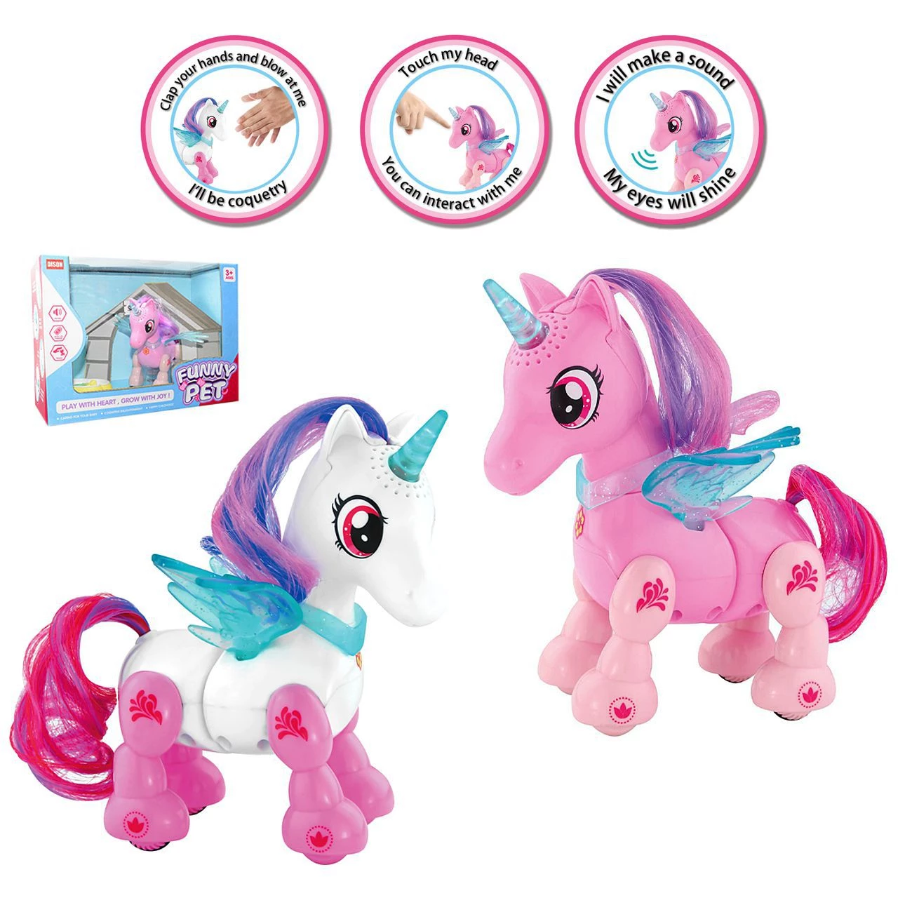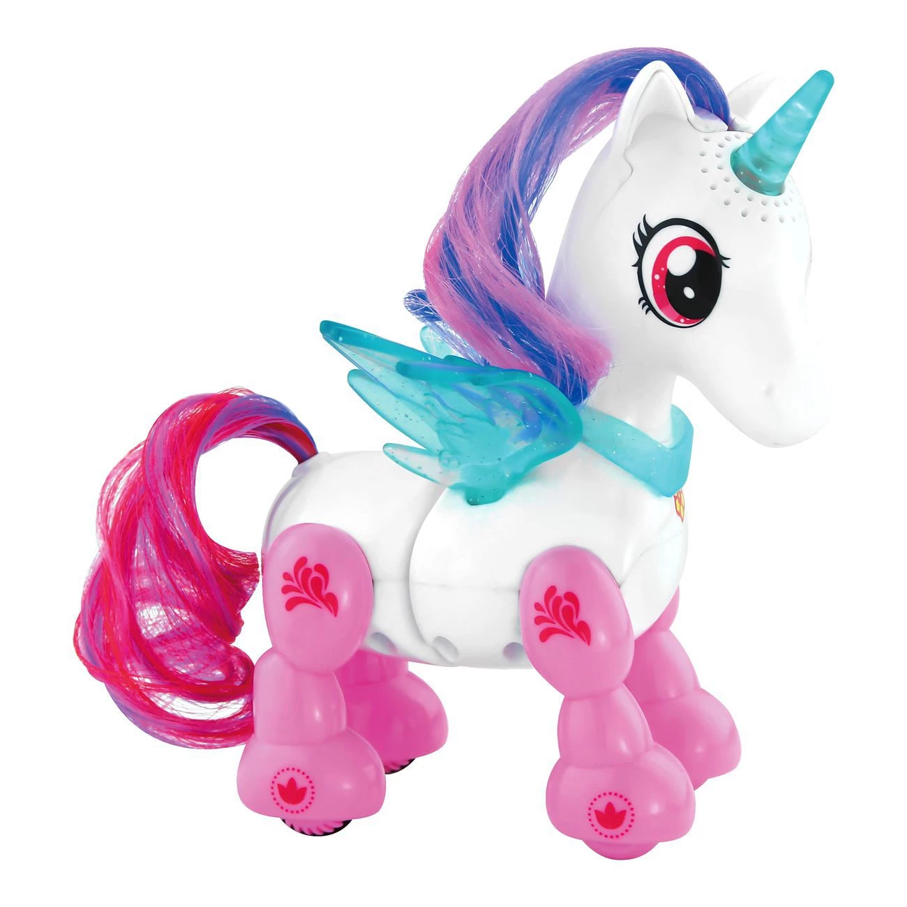 Interaktivni samorog na baterije, ki pleše, se oglaša, a s ploskom vaših rok postane prikupen. Z dotikom in božanjem po glavi, pa bo postal še bolj dostopen in ljub. Polnjenje z USB priključkom. Priporočljivo za otroke starejše od 3 let.