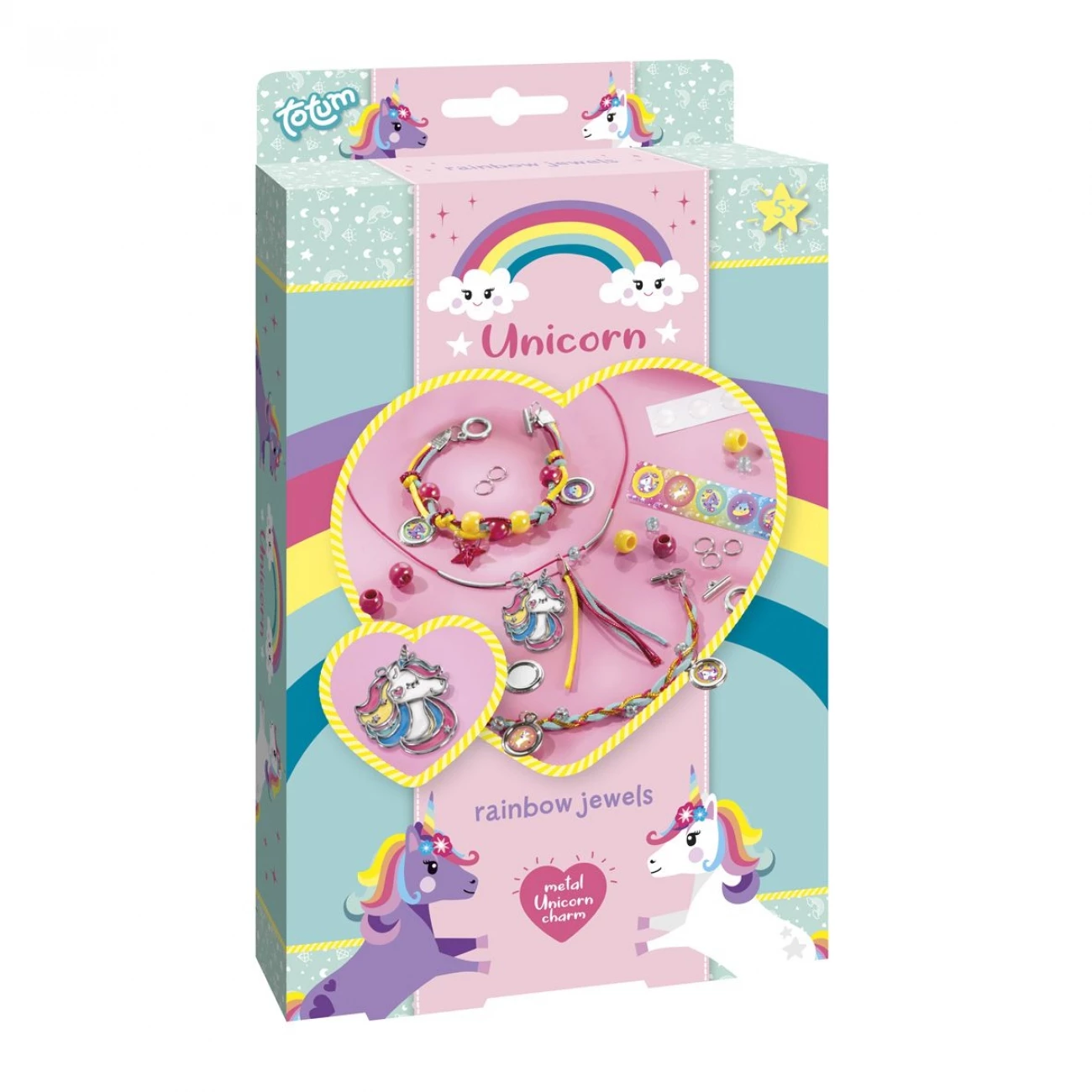 Kreativni set za izdelavo nakita z motivom enoroga Vsebuje; nalepke, obeski, trakovi, koče, kroglice in navodila Priporočena starostna skupina 5+