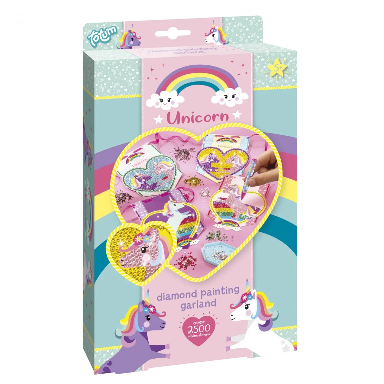Set za okrasitev motiva enoroga Vsebuje različne okraske, okrasne kamne, 4 kartice, trak, držalo za kamen, 6 barv Priporočena starostna skupina 5+