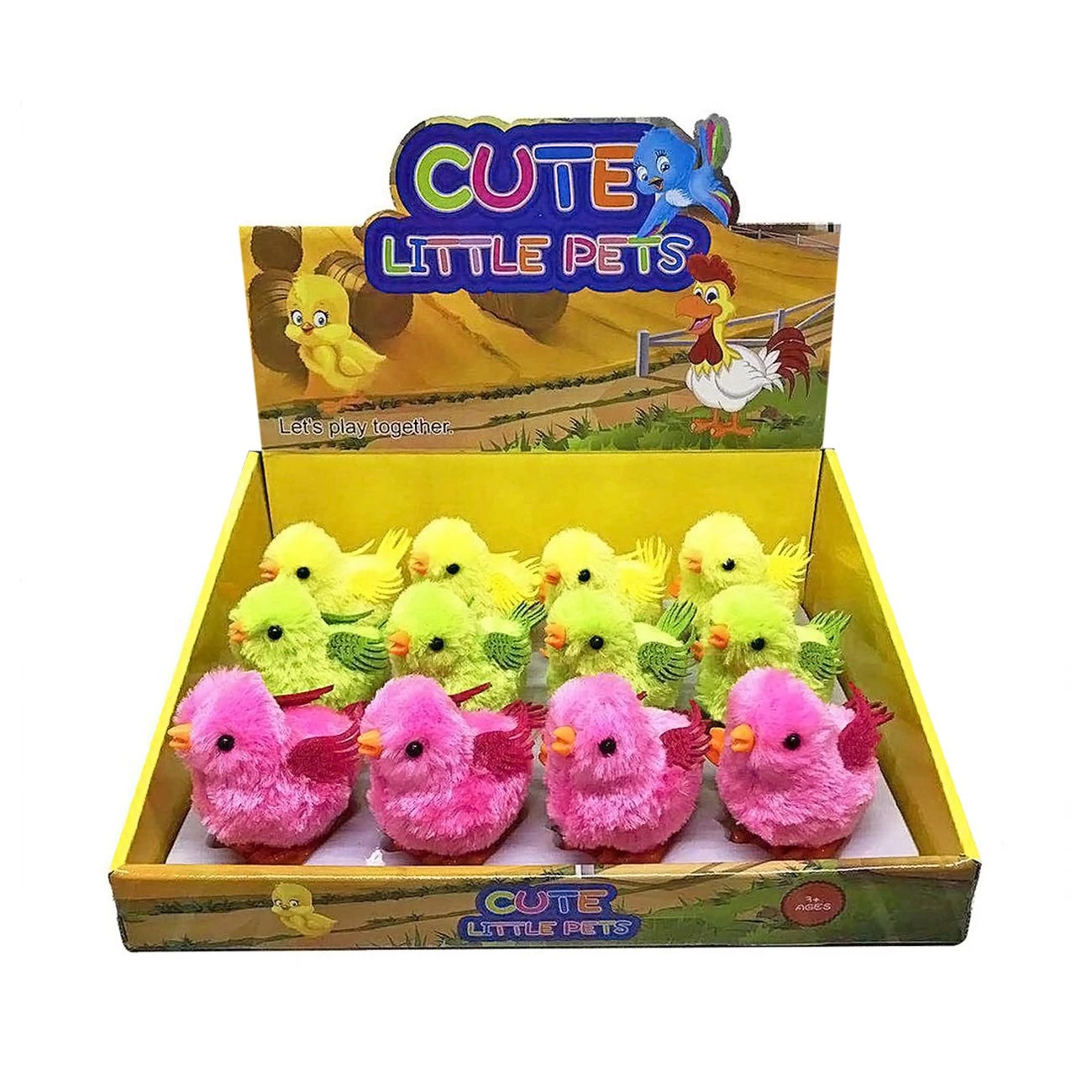 Igrača piščanček na navijanje. Kakovosten mehanizem za navijanje omogoča premikanje piščančku po kateri koli ravni površini. Realistični dizajn, mehak in puhast. Zagotavlja dolge ure zabavne igre. Piščančki so na voljo v rumeni, zeleni ali roza barvi. Velikost piščančka: 8 x 5,5 x 9 cm.
