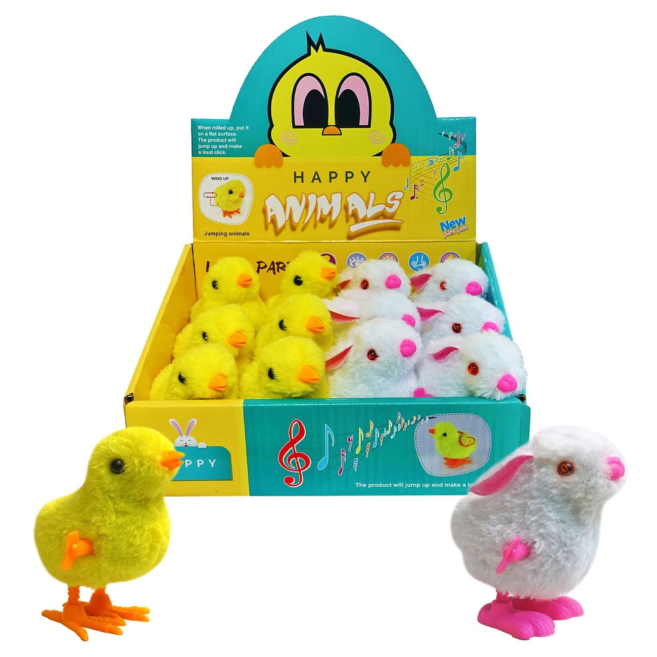 Igrača piščanček in zajček na navijanje. Kakovosten mehanizem za navijanje omogoča premikanje piščančku in zajčku po kateri koli ravni površini. Realistični dizajn, mehak in puhast. Zagotavlja dolge ure zabavne igre. Velikost piščančka: 8 x 5,5 x 9 cm. Velikost zajčka: 7 x 5,5 x 9,5 cm.