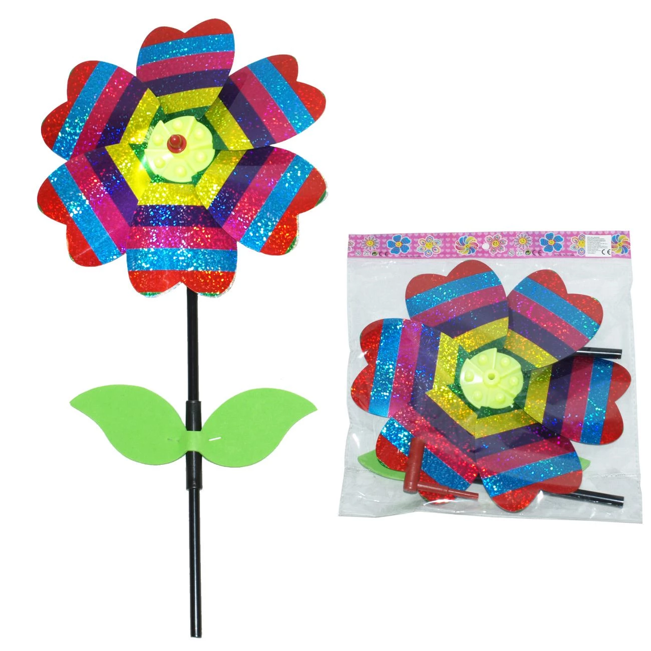 Pisana vetrnica je velika 40 cm. Oblikovana je kot rožica s premerom cveta 20 cm. Je sestavljiva in pisanih barv.