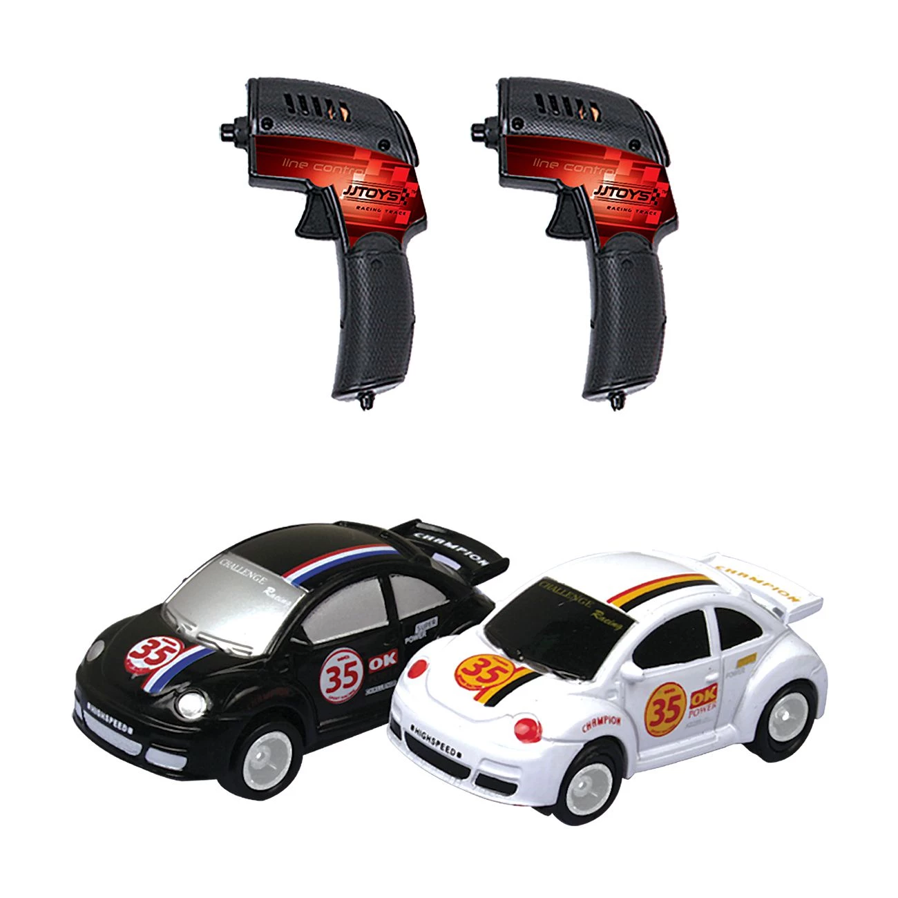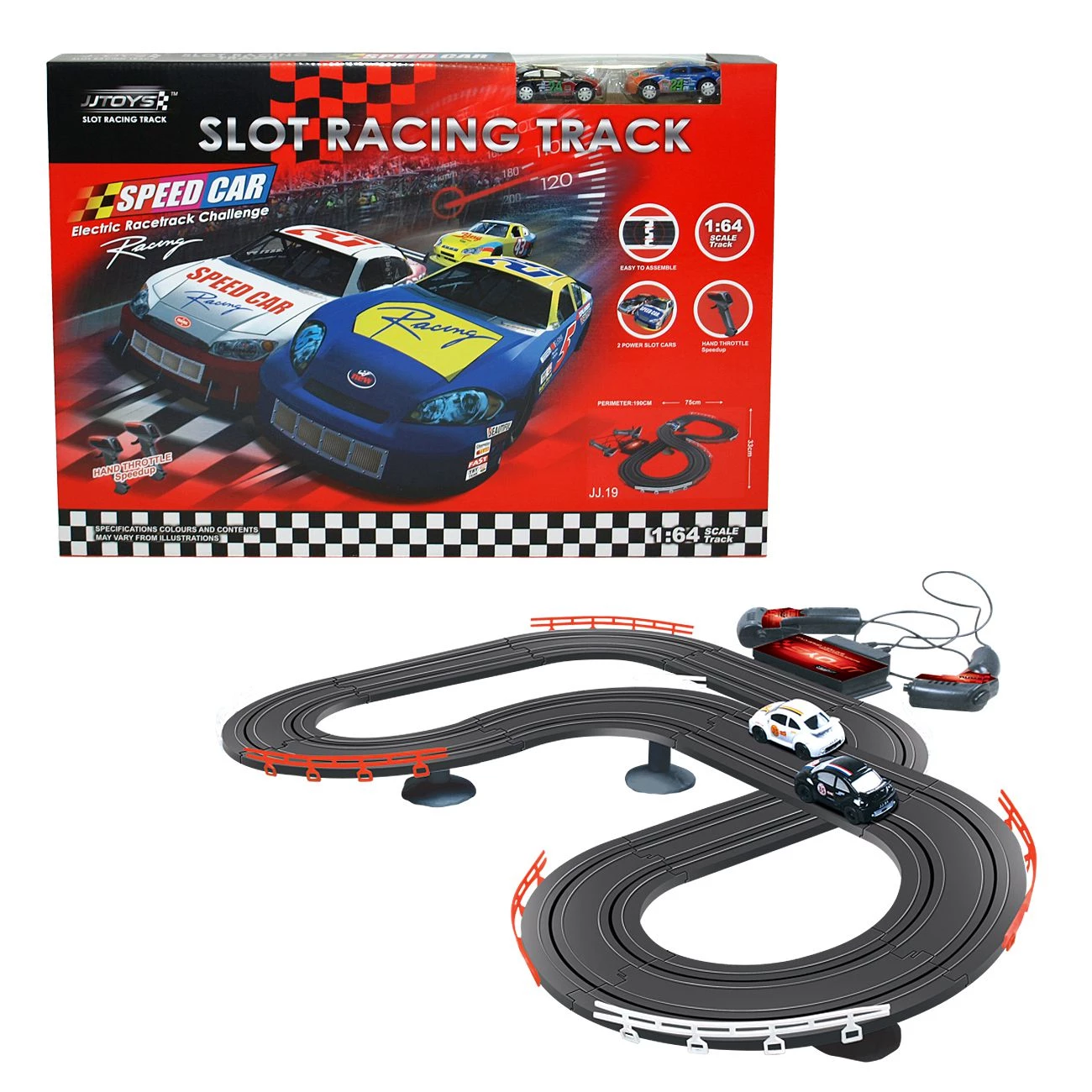 Vsebina: 2 avtomobila, 2 upravljal- ca, 3 ravni deli, 8 zakrivljenih de lov ceste, bazna, 8 zaščitnih ograj Potrebujete 8 bat.AA, ki niso prilo žene.