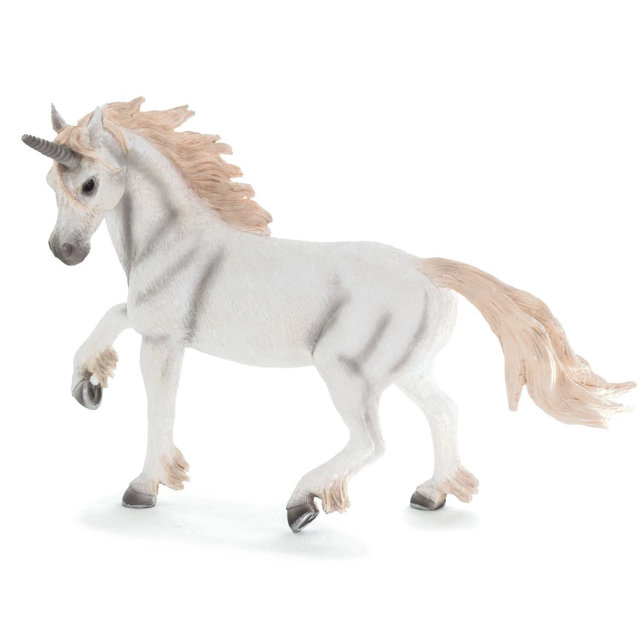 Konj enorog, 12 x 17 x 6 cm. Narejen iz visokokvalitetne plastike, zdravstveno atesirano. Predvideno za otroke starosti 3+.
